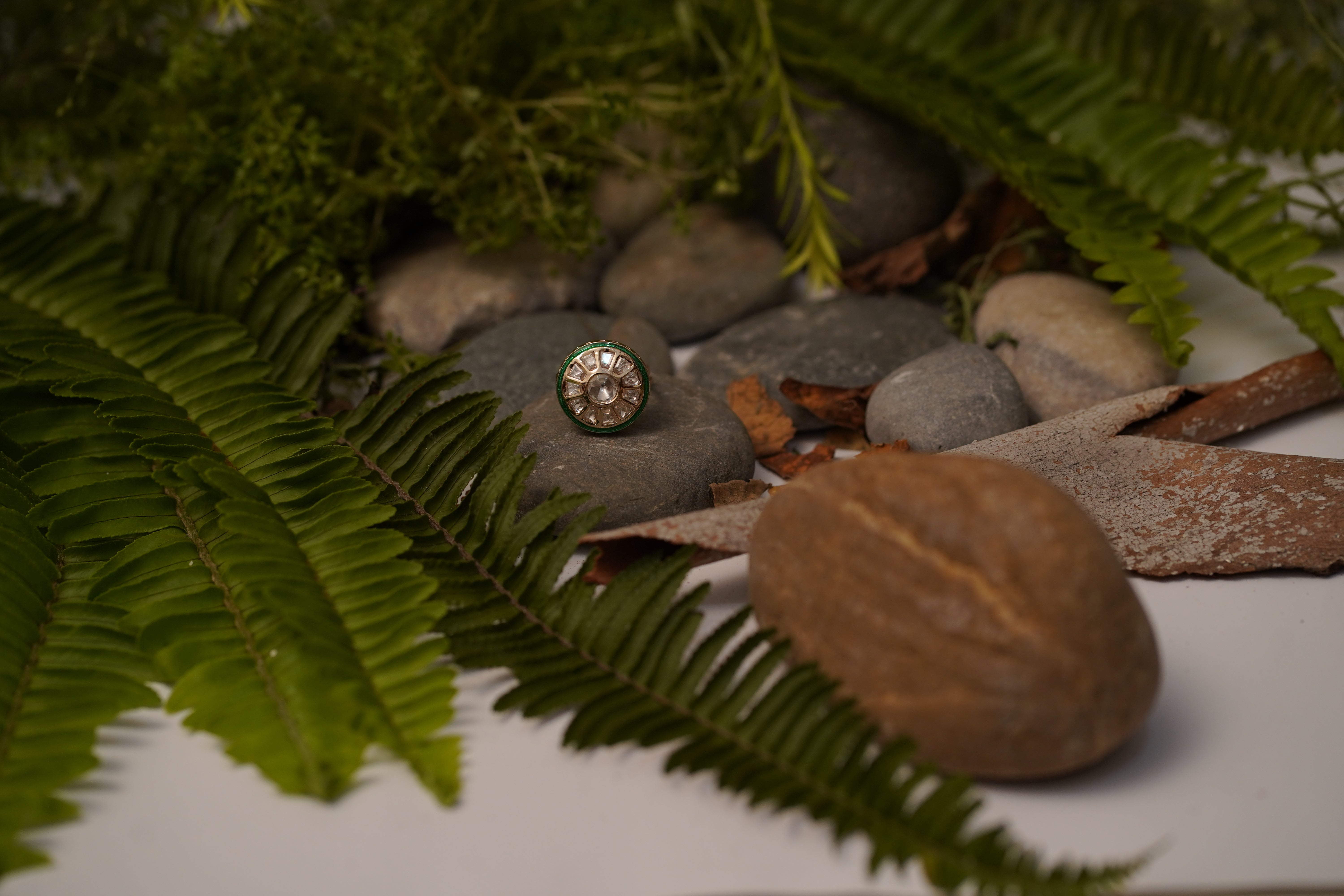Elevate your ethnic look with this Ethnic Kundan Adjustable Ring, beautifully crafted with sparkling green and white stones set in a premium gold polish finish. Designed with traditional Indian artistry, this ring exudes grace and royalty, making it perfect for women & girls who love timeless jewellery. 💍💚✨