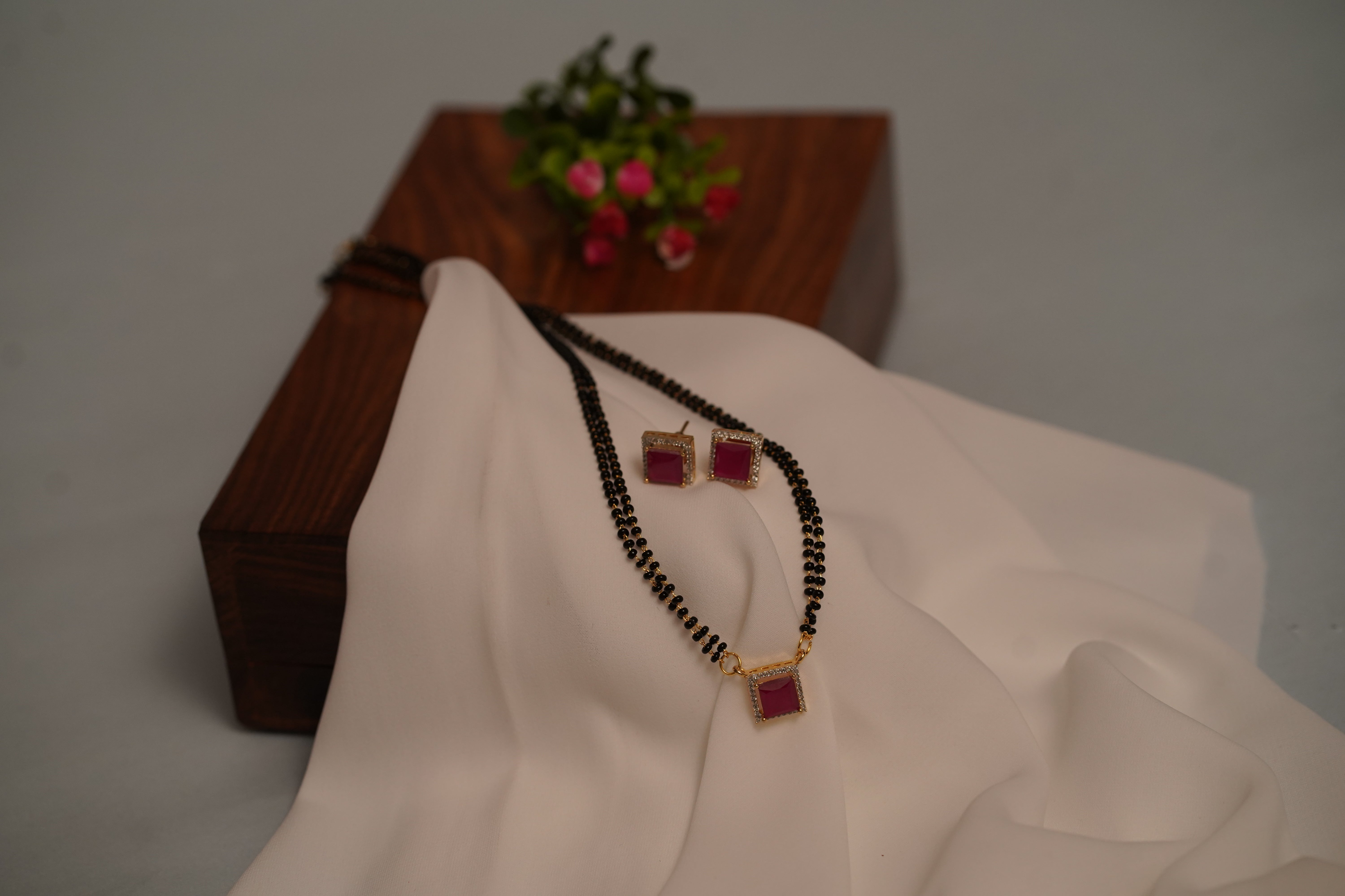 Redefine elegance with this Trendy Square Pendant Mangalsutra, designed for modern women who prefer a blend of tradition and fashion. Featuring a stylish square pendant adorned with sparkling ruby red stones, this piece adds a glamorous touch to your daily look while keeping the essence of a traditional mangalsutra alive. 🌸💍