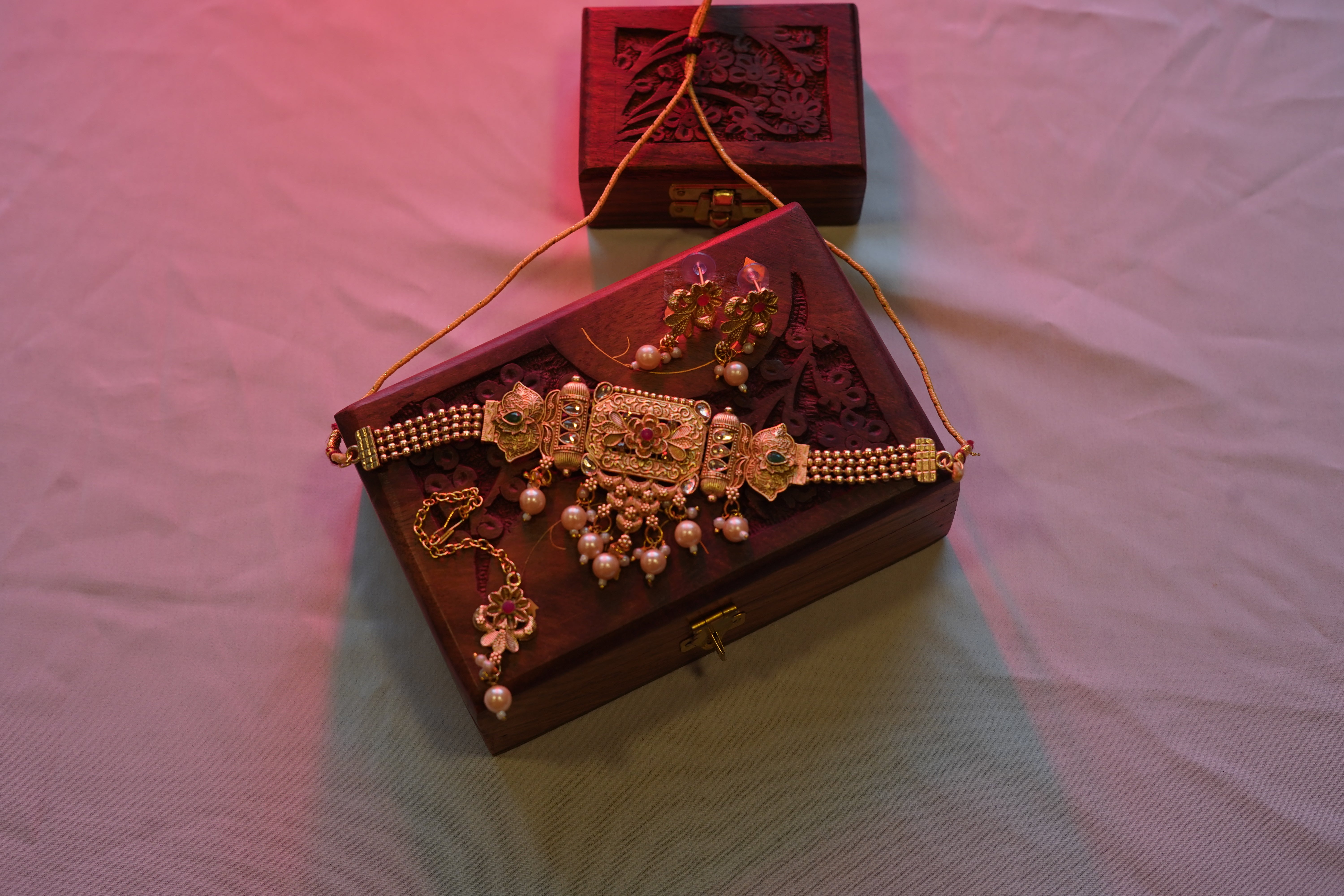 Elevate your bridal charm with this Traditional Gold-Plated Necklace Set, beautifully designed with pearl detailing and intricate Kundan work. This complete set includes a statement necklace, matching earrings, and a Maang Tikka, making it a perfect choice for brides and festive occasions.
