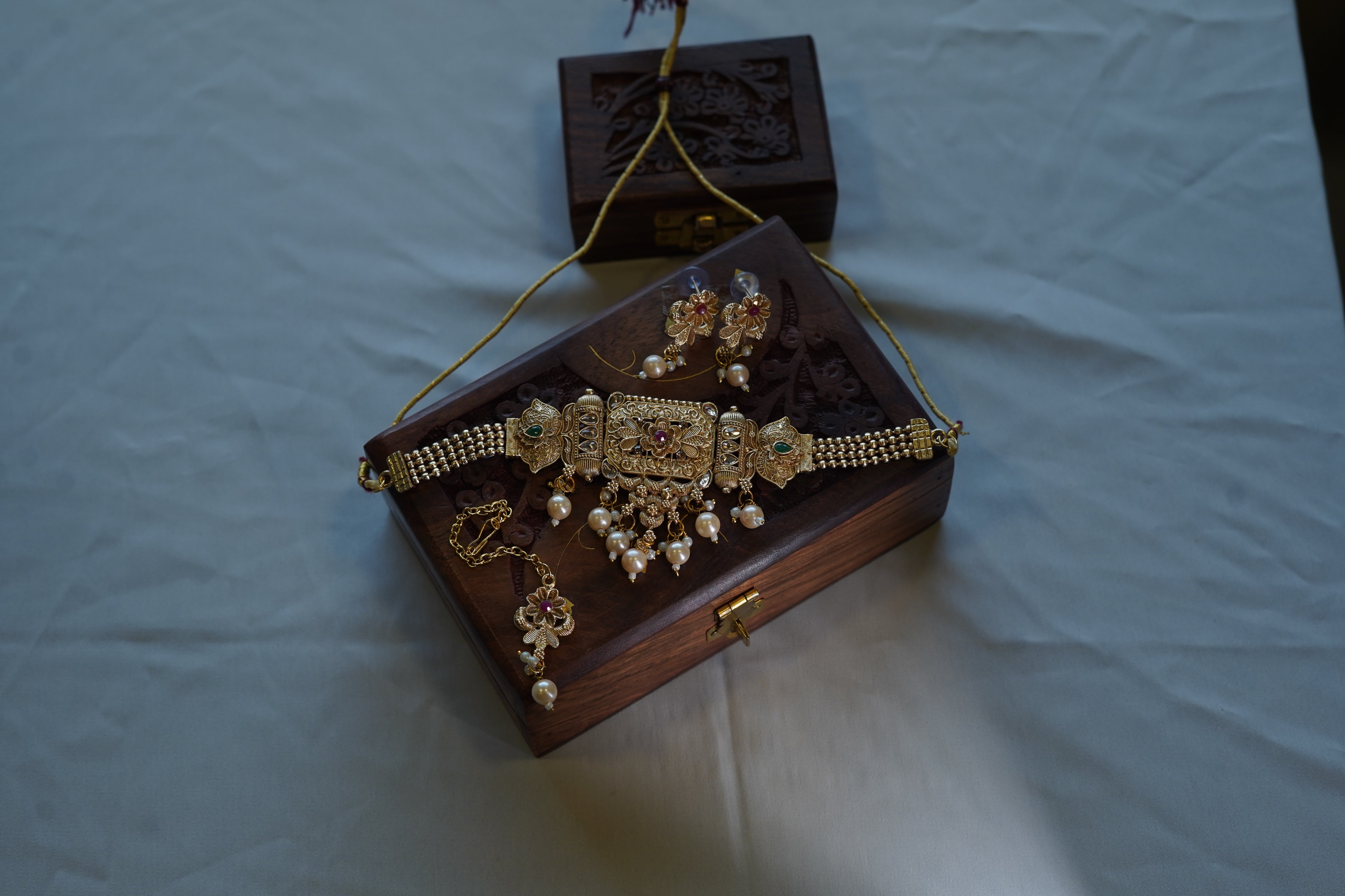 Complete bridal set β Necklace, Earrings & Maang Tikka.
