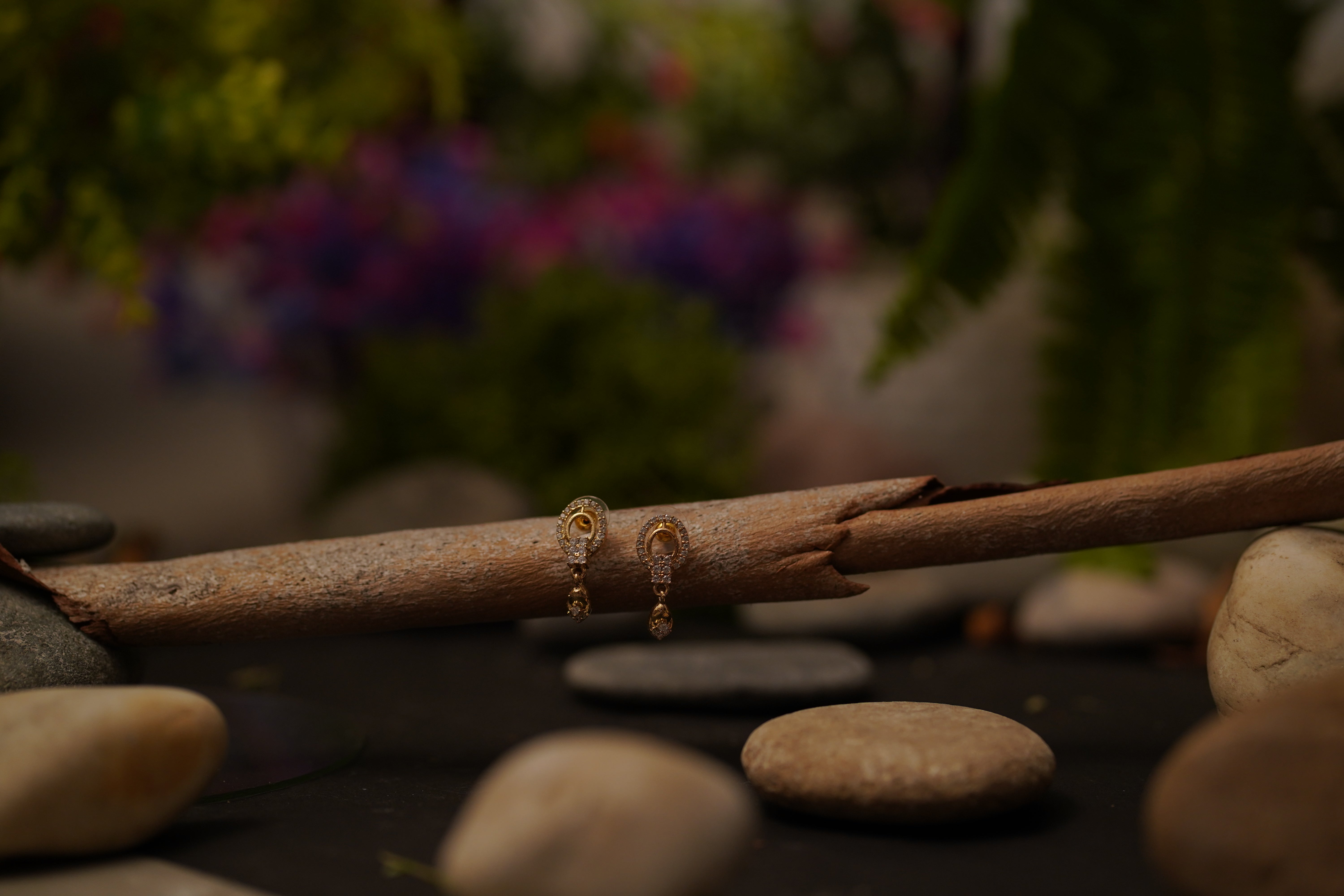 Add timeless elegance to your jewellery collection with these gold-plated stone studded drop earrings. Designed with a circular top embellished with sparkling stones and a delicate drop detail, these earrings bring just the right amount of shine to your look.