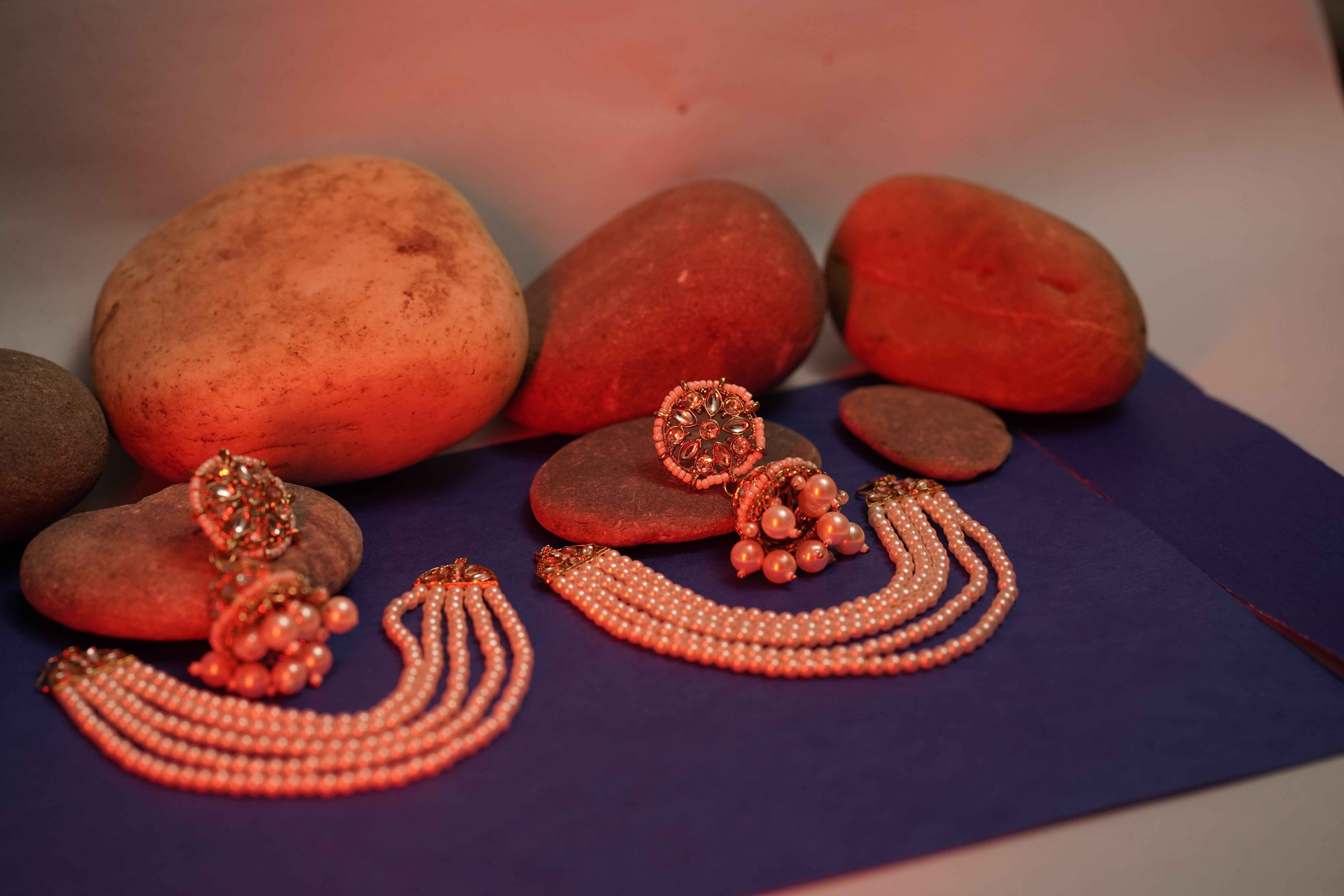 Highlight: Multi-layered pearl chains on both sides for a royal touch.