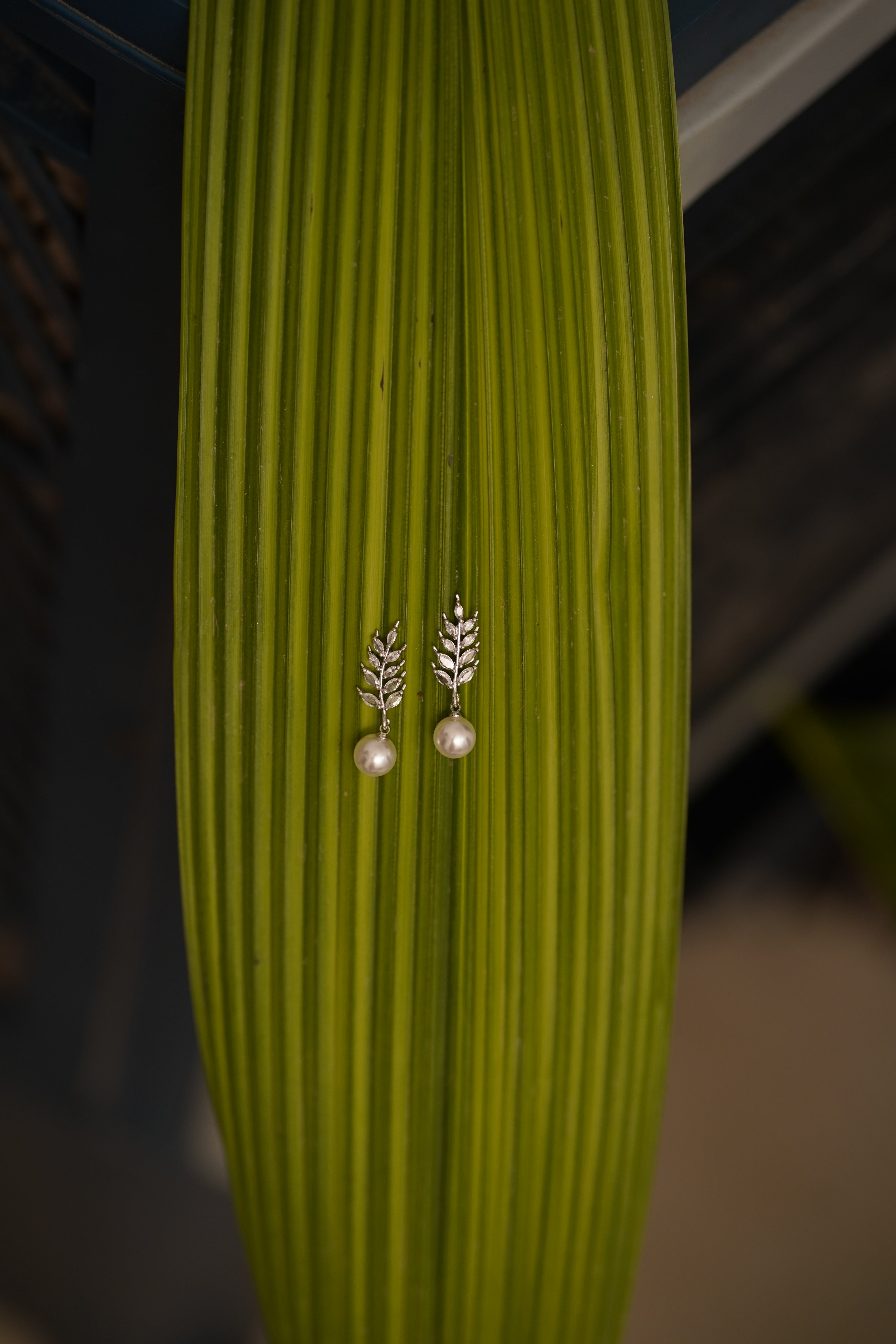 Premium-quality silver finish earrings with intricate leaf detailing.